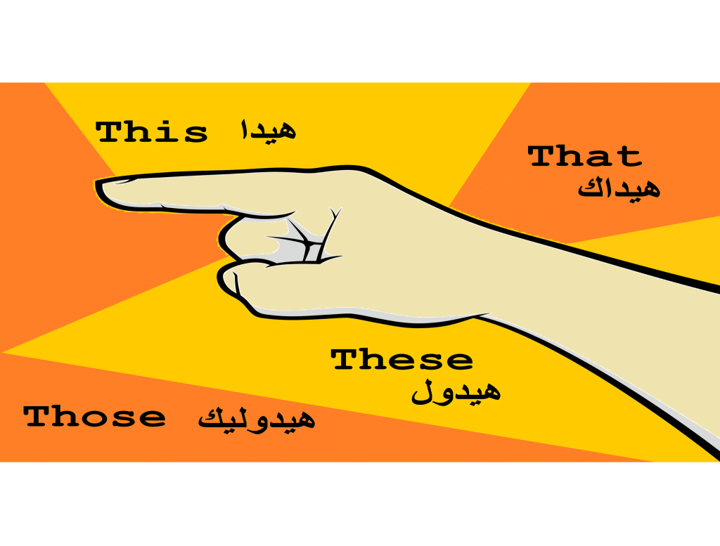 Mariam joins forces with Leen to tell us about the grammatical concept of demonstratives, which help us differentiate objects, events, and people in relation to the speaker. We select demonstratives such as “these” and “those” based on our perceived closeness or distance to the object. So whether you want to talk about these trying times and those yummy falafel sandwiches you ate recently, this episode will help you communicate these ideas.